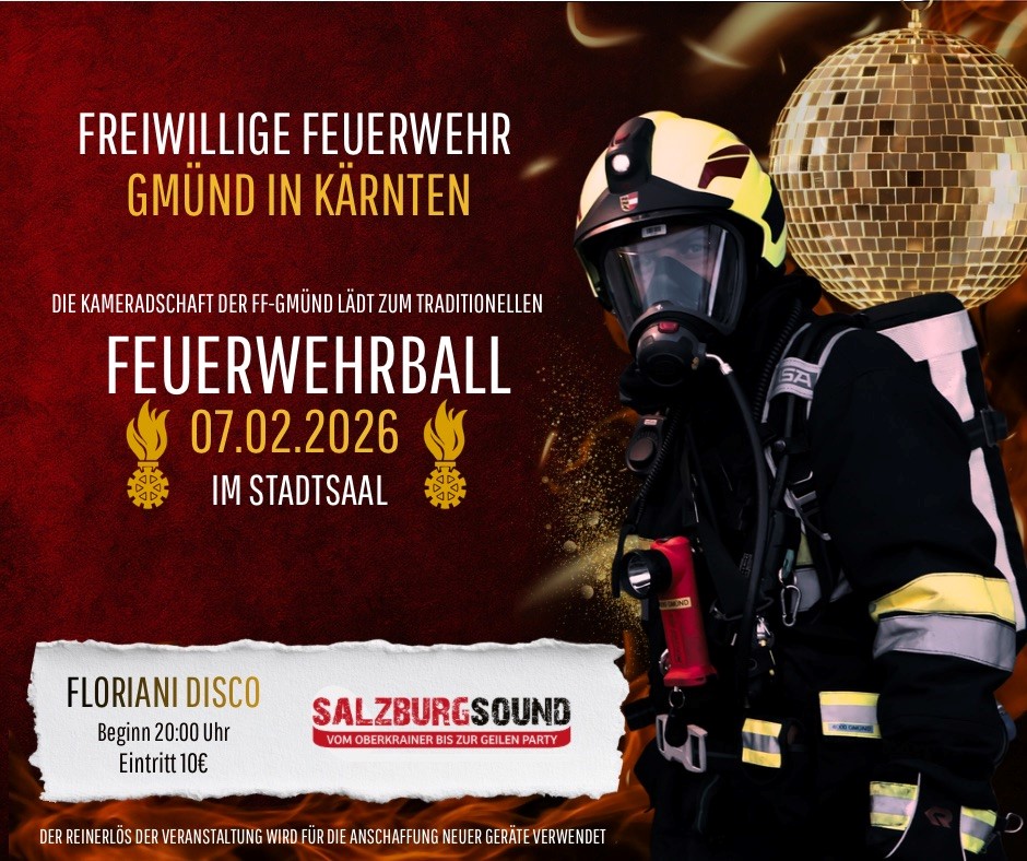 Einladung zum traditionellen Feuerwehrball der Freiwilligen Feuerwehr Gmünd.